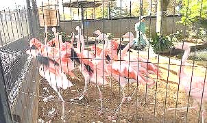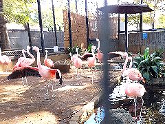 2016/11/18 フラミンゴ舎改修中フラミンゴの池の上には網が張ってあったのですが、ゆるんだり切れたりして隙間が開いてきました。その隙間を狙ってカラスやムクドリがフラミンゴの餌をくすねに来るのですが、その量がかわいらしいものではなくひどい、ということで、侵入防止にテグスを張り始めました。資金が無いので、飼育の合間を縫ってすべて手作業。また、カラスやムクドリに餌をとられっぱなしで反撃もできないことからも分かるように、警戒心が強く臆病なフラミンゴのストレスになりすぎないよう、1日1時間が作業の上限です。 完成する前から、野鳥たちは警戒して近づかなくなりました。フラミンゴも少しは快適になったかな? 【写真左: 鬼軍曹の「もやい結び検定」をクリアしないと参加できません。自主練が必要です】 【写真上③: いかつい顔と鋭い目つきが怖い印象もありますが、警戒心がとても強い動物で、群れの他の個体と一緒に行動します】 (ゆめみにゅーす VOL 42) 2016/11/20 秋の動物園まつり 現在15羽います。フラミンゴ舎の改修が行われ、野鳥が舎内に入りにくくなりました。来年のヒナの誕生を目指し営巣地となる場所の土を柔らかくする作業を行っています。【写真上④】 (動物リレーガイド) ![]() ![]() |