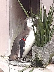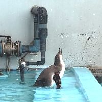ところで、ペンギンに餌をやっている場面を見たことはありますか。多くのペンギンが人のそばに寄ってきて魚をキャッチしようと待っています。わざわざ陸に上がって手から直接魚を受け取っていくものも少なくありません。一見ほほえましくも見える光景ですが、実は、怪我をしたり体調を崩したりして投薬が必要になったとき、これが役に立つのです。ペンギンを怖がらせず、苦い味を隠して薬を与えるには…魚の中に薬を忍び込ませ、直接食べさせればよいのです。他の動物でも、バナナなどの果物に埋め込んだり、粉にしてミルワームにまぶしたりと工夫をしていますが、いつもと違うぞ…と感づかれて失敗することもしばしばです。薬ひとつで、毎度頭をひねって知恵比べをしています。【写真右】 (ゆめみにゅーす VOL 22) ★動物たちの主な移動(平成23年8月1日~平成23年10月31日)★ フンボルトペンギン(♂2死亡) (ゆめみにゅーす VOL 22) 2011/11/12 巣穴に入るペンギンが増えてきました。例年、冬の始めペアでの巣篭もりが始まり、翌年の春には新しく生まれた仔の鳴き声が聴こえるようになります。 2011/12/23 ペンギンと言うと南極などの寒い極地を思い浮かべますが、フンボルトペンギンはペルーやチリ北部のもっと暖かいところに住んでいます。日本の気候に合った鳥かも知れません。食事時、早速みんな集まってきました。「今日の食事はなあに? おや、いつもの鯵だ」。【写真左】 ![]() ![]() 2012/02/27 ペンギンプールの補修工事のため、次の期間、水禽舎の展示を休止します。 展示休止期間 3月5日(月)~3月9日(金) ※天候状況などにより工事が遅れた場合、水禽舎の展示休止を延長させていただきます。ご理解ご協力のほどよろしくお願いします。 (公式HP) 2012/03/05 天候不順のため水禽舎の展示休止期間を3月11日(日)まで延長しました。 (公式HP) ペンギンプール工事のため水禽舎は閉鎖されていました。そこでペンギンたちがどこにいるか、水禽舎のシャッターの間から中を覗くと、いつも来園者がペンギン舎を見下ろす場所でみんな落ち着かない様子でウロウロしていました。【写真左】 2012/03/12 ペンギンプールの補修工事が終了しましたので、水禽舎の展示を再開しました! (公式HP) 2012/03/18 春の動物園まつり 療養中の2羽が紹介されました。 (バックヤードツアー) 2012/05/03 かながわ生き物語<5>鋭いくちばし武器にも フンボルトペンギン 夢見ケ崎動物公園 「水中の狩人」-。そのかわいらしい容貌からはピンと来ないかもしれないが、ペンギンはそう呼ばれている。ワシやタカが空を飛び小動物を狩るように、ペンギンは水中を飛ぶように泳ぎ、魚を捕らえ、食す。 でも動物園では…。プールを泳ぐ姿は格好いいが、ヨチヨチ歩きに思わず顔がほころぶ。「それでも」と飼育担当の嘱託職員細越利善さん(54)。「くちばしは、十分に野性の狩人を思わせる」。フンボルトペンギンの上くちばしは先端が鋭く、くわえた魚を押さえ付ける。下くちばしは、まるでカミソリのようだという。 ペンギン同士でけんかして血だらけになることもある。個体識別のタグを取り付けるためペンギンを固定していると、かんでくるのが職員泣かせ。「ほとんどの職員が何度も経験する。なかなか治らなくて…」。血と涙の飼育物語だ。 夢見ケ崎動物公園にいるペンギン十九羽のうち、二羽は上くちばしが欠けている。昨年欠けた一羽は体調不良のためバックヤードの動物病院に入院中だが、七年ほど前に欠けた十三歳のオス「ハッシー」は展示中。のんびりとした姿を見ることができる。 くちばしが割れた原因は分かっていない。餌をとるのに不便だろうと、職員や歯科医師、歯科技工士らが協力して、人の入れ歯に使う樹脂などで人工のくちばしを作り、話題になったこともあった。しかし、接着剤と水の相性が悪く、取れたり付け直したりを繰り返していた。動物園で与える動かない魚なら、欠けたままのくちばしでも器用に受け取ることができると分かり、二年ほどして外し、そのままになった。 「二、三年前には、子育てまでやってのけた」と細越さん。巣でひなの面倒をみる時間が母親より長かった。魚を一度食べて、こなれた状態にして吐き戻し、ひなに与えていたという。 「生きていくためになんとか工夫して餌を食べ、ひなも育てた」と細越さん。「園の動物たちにどこまで手を出すべきか、考えるきっかけになった」 ペンギンを見るのにお薦めの時間帯は午前九時と午後四時すぎごろ。餌を与えているところが見られる。 ペンギンたちは、同園で働いて十五年の細越さんに対しても餌の時間以外は決して近づこうとしないという。かわいらしいペットのように見えるが、野性味たっぷりなのだ。(山本哲正) (東京新聞) 2012/08/04 フンボルトペンギンの原産地は、南半球の氷山のあるような寒いところではなく、比較的温かな場所のため、日本の寒さにも暑さにも適応しやすいようです。でも蒸し暑い夏場のペンギンのお姿は、若