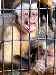 2006/09/09 フサオマキの行動観察が始まりました。いままで左右2部屋のそれぞれに張り渡された長い枝やロープなどが全てなくなり、左の部屋のみに長い枝が1本渡されています。そのうえに若いのが一頭座っていました。観察されるのが苦手らしい、その他の連中は、遊ぶロープも座る枝もない右側の部屋の窓の上、狭いスペースに集まり手持ちぶさたです。【写真上①】 ボスのお父さんは真ん中でふて寝の最中でした。 2006/09/16 行動観察の第2段階が始まりました。左右の部屋に縦にロープが何本も下がりました。左の部屋では一家全員で、ようやく手持ちぶさたが解消できると遊んでいます。でも右の部屋はそれほどでもないようです。 2006/09/23 秋の動物園まつりです。餌をペットボトルの中に入れたものを渡しました。3匹が集まり試行錯誤の末、逆さに振って餌を出していました。【写真上②と③】 2006/10/11 エンリッチメント調査は、8日には縦のロープが外されていましたが、11日からロープが横に張られ、様子を見る調査が始まったそうです。 2006/11/12 エンリッチメント調査が終わったのか、ロープが外されていました。 2006/11/15 エンリッチメント調査は、一番細いロープの利用について追試になったそうです。 2006/12/24 エンリッチメント調査用の太いロープは、研究熱心なロープオタクが出現し、手と口、舌まで器用に使い糸に分解されました。機織り機を入れたらマフラー位は織ってくれそうです。【写真上④】 お陰で地面には糸が散乱、積み重なり、地面がエンリッチになりました。 ![]() ![]() 2007/01/24 関東東北ブロック動物園技術者研究会が、23日、江戸川区自然動物園で開催され、フサオマキザルのエンリッチメント調査について発表が行われました。 7月30日は、東京農工大の環境エンリッチメント実験第2弾「フィーダー(エサやり器)」に関するもののお試しを行いました。バナナを1本皮付きでまるのままクモザル、オマキザル、リスザルにあげてみました。クモザルは手を使い、オマキとリスは手と口を使いそれぞれに皮をむいてから実を食べてました。でも結局皮も食べちゃったようなんですが・・・(ちなみにニホンザルは皮のまま囓り、皮をはき出したとのことです。)やはりオマキの方がワンランク上か? そしてドイツ製のダルマ落としのようなフィーダーと竹筒も使います。【写真左 7/7 撮影】 (「ブログ「動物園からの手紙」) 2007/08/22 昨年秋、東京農工大大学院生が行なった環境エンリッチメント実験の成果が、オーストリア、シェーンブルン動物園で行われた、第8回国際環境エンリッチメント会議、ポスターセッションで発表され、銀賞を受賞、賞状のコピーと抄録(英語版)が、リスザルの檻に掲示されています。 (「ブログ「動物園からの手紙」) 右はリスザルの檻に掲示された銀賞。三浦及莉子さんなどの名前とともに、夢見ヶ崎動物公園の柾さん、宇田さんの名前も列挙され表彰されています。【写真右】 おめでとうございます。銀賞と一緒に掲示の説明によると:第8回国産環境会議エンリッチメント会議は、 <日程>2007年8月5日~10日 <会場>シェーンブルン動物園(オーストリア、ウィーン) において、三浦及莉子さん(川崎市宮前区在住、東京農工大学比較心理学研究室(武田庄平准教授)修士課程2年生))の発表が、シルバーアワードを受賞しました。この会議では日本人初となる快挙です。 発表の概要 「動物園におけるフサオマキザルの飼育環境エンリッチメントの実験的分析」 フサオマキザル獣舎に太さの異なるロープを張り、それをどのように利用をするかを調査分析しました。 2007/09/20 農工大の環境エンリッチメント実験が始まります。今回はエサやりに関するもので、竹で作ったえさ箱を檻の外に付け観察するそうです。 2007/09/29 環境エンリッチメント実験で、檻の外にエサの入った竹筒が設置されていました。フサオマキの子供たちが檻の外に手を伸ばし器用に取って食べていました。 2007/10/20 母親が妊娠しているそうです。今年は少し遅めのようです。去年は6月8日に生まれています。 環境エンリッチメント実験が続いています。【写真左】 来園する人の多くは足を止め実験の様子を眺めています。散歩で訪れる犬も同じでした。実験が行われているフサオマキザル舎の両隣にいる、ボリビアリスザルとクモザルも、フサオマキたちが外に手を出しては、エサを取る様子を羨ましそうに眺めていました。【写真右】 2007/11/11 環境エンリッチメント調査に使われていたエサやりの道具が取り払われ元の姿に戻りました。 2007/11/21 期待された出産はまだのようです。6日の東京新聞に「農工大の環境エンリッチメント調査」の記事がでました。 ![]() ![]() 1年おきに赤ちゃんが誕生するようで、今日、生まれているのを見つけました。いつ生まれたかの掲示はなく、つい最近と思われます。昔から子煩悩な父親で、両親で赤ちゃんをあやしている姿が印象的でした。母親の腕の間からは無心に両親を眺める