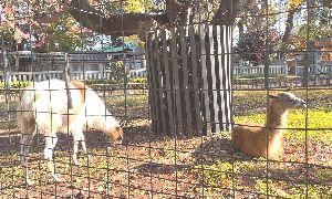 「ナン」と違い唾を吐きかえるところを見たことがない「タイタン」。安心して近づけるようです。【写真左】 (島貫) 2015/09/16 ラマ 「タイタン」に群がるカラス。【写真上①】 (島貫) 2015/09/19 通りかかった飼育員に呼ばれ寄って行くラマの「ナン」。【写真上②】 入園してそろそろ1年、夢見の環境にも慣れ、落ち着いた表情を見せています。【写真上➂】 2015/10/31 「タイタン」のお腹の毛が抜けています。ラマは寒さに強い動物のようです。これから冬毛に替わるのでしょうか。【写真上④】 2015/11/12 恋の秋です。 秋になり、だんだん日が短くなってきました。日が短くなると、発情してオスがメスを求め始める動物たちがいます。マーコールやホンシュウジカは、オス同士が角をぶつけ合い、力比べをします。ホンシュウジカは飼育スペース内でそれが起こると大変危険なため、毎年角を切っていますが、それでも気が荒くなり、激しく頭突きをしてきます。アカリスやプレーリードッグもこの季節に発情、交尾します。出産・子育てが暖かい春から夏になるように、うまく妊娠するのですが、ラマは長い妊娠期間の後、次の冬に出産します。 発情期は普段とは異なる行動を見せることがあります。そして「恋の季節」といっても、ロマンチックで優しいものではなく、動物がピリピリ緊張しており、飼育員が巻き込まれないよう最も気をつけなければならない時期でもあります。 (ゆめみにゅーす VOL 38) |