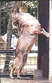 角鞘の抜け落ちた後のエルの角突起は出血して痛々しく、エルも数日間他の個体との接触を避けるように隅にいることが多かったです。また、このチャンスを逃すまいと、比較的体格が良い年下のオス達(グレン、グラタン、ゲンゴロウ)が第3位の座を狙って、逃げ腰気味のエルの後をしつこく追う姿も多くみられました。 現在は角突起も乾燥し、少しずつ落ち着きを取り戻し、本来の生活に戻りつつあります。【写真左】 ただし、この状態ではオス同士の激しい角当(スパーリング)は難しいと思われ、今年のボスの座を巡る争いからは早くも戦線離脱してしまった感が大きいです。 実はエル、昨年の発情期には左後肢を骨折し(イワンかウタマルとの争いの際に負ったものと思われます)、治療と経過観察のため半年間寝室暮らしを余儀なくされていたのでした。 これから迎える発情期、エルはイワンとウタマルだけでなく、更には若いオスたちにもいつも以上に目を光らせて動かねばならないはずで、しっかりと乗り切ることができるのか、私たちとしても気がかりです。 今年はエルにとって、これから先の群れ内での立ち位置を決める重要なシーズンとなることは間違いなく、ボス争いだけでなく、エルの動向もしっかり観察していきたいと思います。 (鈴木)(公式FB) 秋の長い夕陽を浴び岩山の上で憩うマーコール。【写真右】 2018/11/06 獣医の日記 現在脚の治療をしているマーコールの子どもがおり、親子で室内に隔離されています。 5 月に生まれ、元気に育っているように見えたのですが、6 月に左の後肢を引きずり始めました。ジャンプなどで痛めたのと少し様子が異なります。骨に異常はなく、炎症を抑える薬なども効かず、原因は不明ですが、踵から下の血流が止まっていることがわかりました。血液の行かなくなった組織は死んでいき、元には戻りません。そのままにしておくと全身に影響が出る恐れもあります。命を助けるなら、足を切り離すしかありません。 3 本足になったマーコールが動物園の中でとはいえ生きていけるのか?犬や猫では手術で 3 本足になることはそこまで珍しくなく、術後も健やかに過ごせますが、マーコールは山を飛び跳ねます。じっくり議論したいところですが、話し合っている時間が長くなれば本人の状態はどんどん悪くなります。短い時間で検討し、 若くて体重の少ない今なら残った3 本足でも耐え、適応して生きていけると考え、足の切断手術に踏み切りました。 はたして、手術翌日にはしっかり 3 本足で立ち上がって走り出 し、今ではジャンプもします。まだ治療は続いており、外に出られるまで少し時間がかかりそうですが、ゆっくり見守りながら慣らしていくことで適応できるのではないかと思います。(ゆめみにゅーす VOL 50) ![]() ![]() マーコール♀1 死亡・♂1 死亡 (ゆめみにゅーす VOL 51) 2019/04/28 金網を舐めるのが大好きなマーコール。今日もみんなで何とも嬉しそうにペロペロ舐めていました。【写真左】 「ウラン」の仔「シオリ」は、生まれつき左後脚が悪く脚を切断しました。もうじき1歳になりますが、今ではすっかり元気になり3本の脚でマーコール山にも平気で登り地面を駆け回っています。【写真右】 |
