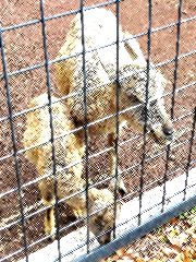 2022/09/03こちらを向いたマーコールの「シオリ」。ここへ来てから少しづつ来園者にも慣れてきたようです。【写真左】 2022/10/15 多勢に無勢。マーコールの毛を集団でむしるハシブトガラス。【写真上④】