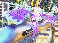 2022/11/12 ピコリーノに新しい衣装3基あるピコリーノの車止めのうち、まん中のピコリーノにそれぞれ違う個性的な新しい衣装が登場。両脇の車止めのピコリーノはいままで通りのの服で、これで全員が衣装を着けたことになります。【写真左奥と上①】 2022/11/19 ピコリーノ。新しい衣装のひとつ。【写真上②と③】 2022/12/08 今日のピコリーノはこんな恰好。【写真左手前】