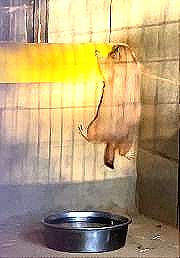 プレイリードッグ舎内の土が減り「プレイリードッグお引っ越中」の掲示がなくなりました。餌も置いてありません。最後に残った3頭目の引っ越しが終わったようです。そこで旧テンジクネズミオス舎を見ると3頭揃っていました。【写真上①】 ここは地面が浅く得意な穴を掘れないため、みんなパイプに出たり入ったり、格子際で外をじっと観察する個体もいました。【写真上②】 穴を掘るのが大好きなオグロプレイリードッグですが、穴が掘れないため、運動不足解消のためか格子登りを始めたようです。【写真左】 2017/03/10 動物公園によると、オグロプレイリードッグは今の部屋でずっと飼育する予定とのことです。 2017/03/23 土が浅く穴を掘れなくなったオグロプレイリードッグ、格子登りも禁じられ(格子の途中にプラスチック板が貼られる)、格子際から外を眺めることが多くなりました。【写真上③】 2017/04/03 部屋に置かれたパイプから出てきたオグロプレイリードッグ。【写真右】 |
