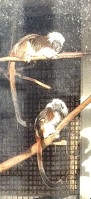 2024/08/04この夏は管理事務所の工事のためか、小型サル舎の部屋のドアが開いていないことが多いようです。 この日の昼、ワタボウシパンシェの部屋のみ、ドアが開いていて、夫婦が外の様子をうかがっていました。 部屋は赤じゅうたんが敷かれていました。 開いたドアから外の様子をうかがうワタボウシパンシェの夫婦。【写真上①】 赤じゅうたんが似合う風格のワタボウシパンシェ。【写真上②】 (平田)